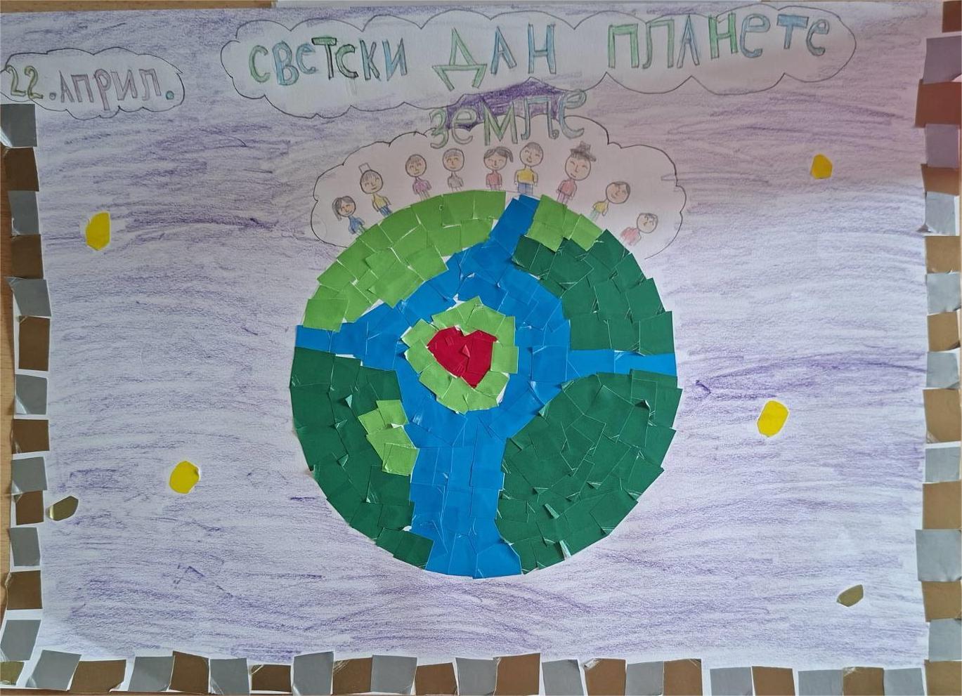 22/04/2026 ЂациШкола Поводом Дана планете Земље Ученици одељења 3/1 данас су својим ликовним радовима обележили Светски дан Планете Земље, 22.априлКроз ликовни плакат, упутили су велики поздрав и поштовање Планети ЗемљиДеца су радосно пруступила раду у жељи да покажу поштовање планети Земљи.Својим радовима деца су послала поруку како треба чувати планету Земљу.У току радионице, деца су разговарала о планети, о томе како људи утичу на њено очување и шта би они променили како би наша планета била боља и лепша.